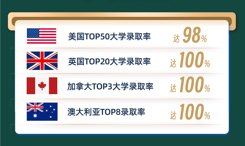 2)申请成果有保障:无论是顶尖大学,还是整体学生平均录取率如下: