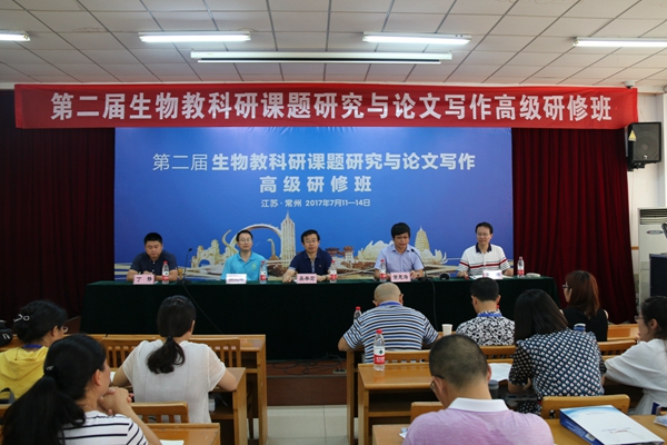 上午8点,研修班正式开班。出席开班仪式的嘉宾有人民教育出版社编审吴成军,江苏省生物教研员吴举宏,常州市生物教研员丁静,前黄高级中学国际分校校长黄惠涛,陕西师范大学生命科学学院教授、《中学生物教学》主编李高峰。整个会场座无虚席,学员热情高涨。
