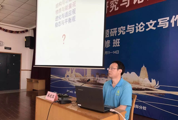 吴教授以朴素的语言、温和的态度、丰富的案例,围绕“基于生物学核心素养的论文与选题”这个主题给全体学员提供了非常宝贵的素材。报告围绕一个主题、从两方面展开:第一,什么是学科核心素养,什么是生物学核心素养,深入理解生物学核心素养是写好论文的重要前提,吴教授就生物学核心素养的“生命观念、理性思维、科学探究、社会责任”分别进行了详细阐述。