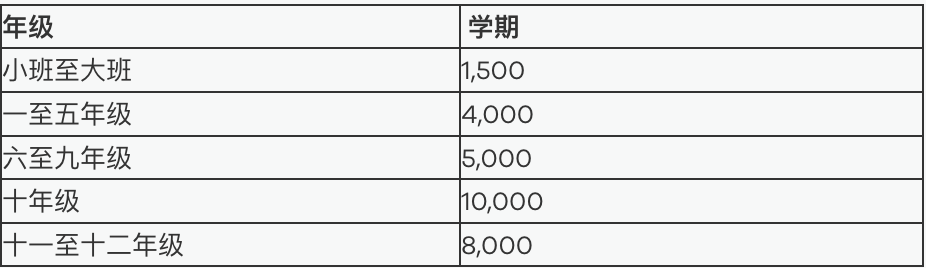 学前、小学部学校午餐费为每学期2,250元,按学期支付。