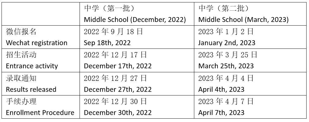 中学国际部(小初统招)招生活动时间安排