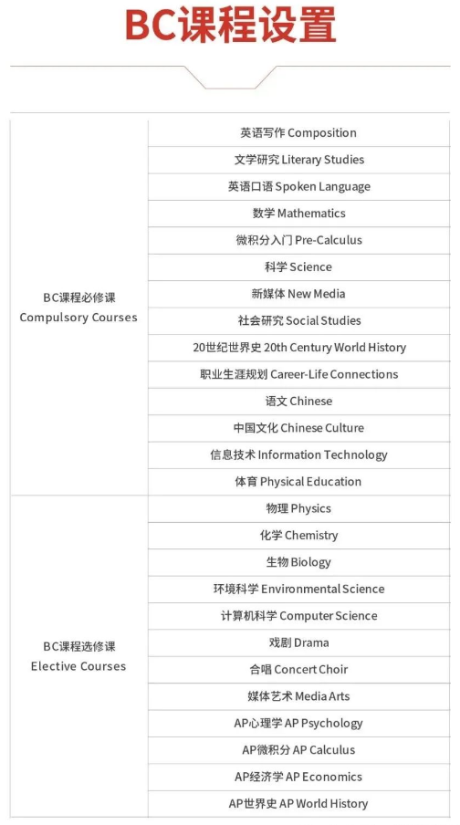 加方课程:BC学籍,修满学分可获得BC省高中毕业证书;中外方共同监督与管理,学生参加BC省统一省考;课程选择多元化,满足不同专业需求;采用BC省同步教材,BC省注册教师全英文执教;BC课程世界受认可度高,毕业后可直接申请海外大学。