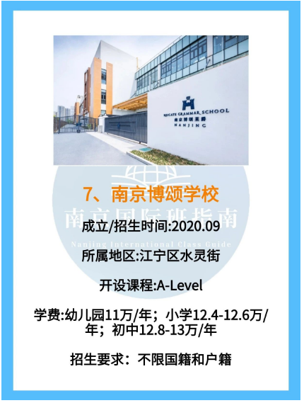 这里也给大家整理了南京7所一贯制的国际学校,包括学校的开办时间、所属地区、课程类型、学费、招生要求等,希望对家长们择校有帮助哦~