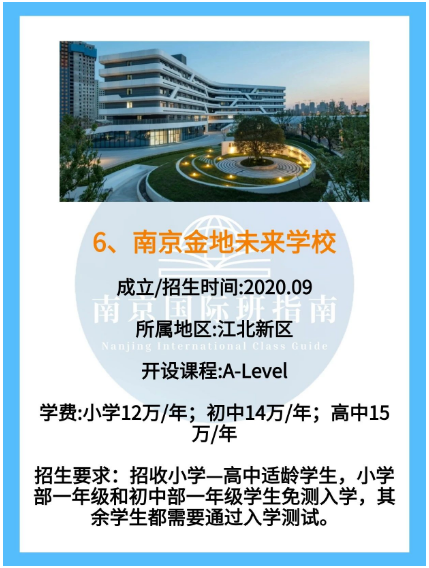 南京金地未来学校坐落于南京国家级新区江北核心区(自贸区)内,是由全球国际化知名企业金地集团的全资子公司——深圳金地教育有限公司全额投资建设,携手英国具有500多年历史、最优质的文法学校——英国皇家文法学校(吉尔福德)打造的一所高端国际化K12学校。学校提供小学至高中十二年制教育,融合国际化教育课程体系,完美继承英式顶级教育课程体系。
