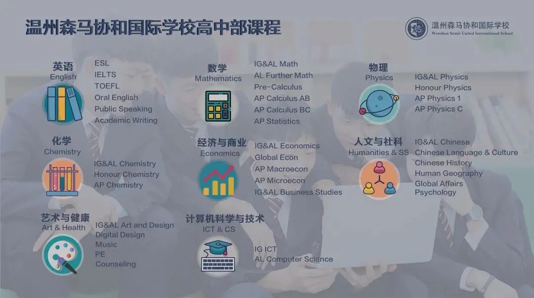 高中部设置 A-Level和 AP课程,通过课程资源共享,为学生提供丰富多元的课程选项,实行分层选课制,真正做到“一生一课表,一人一规划”。