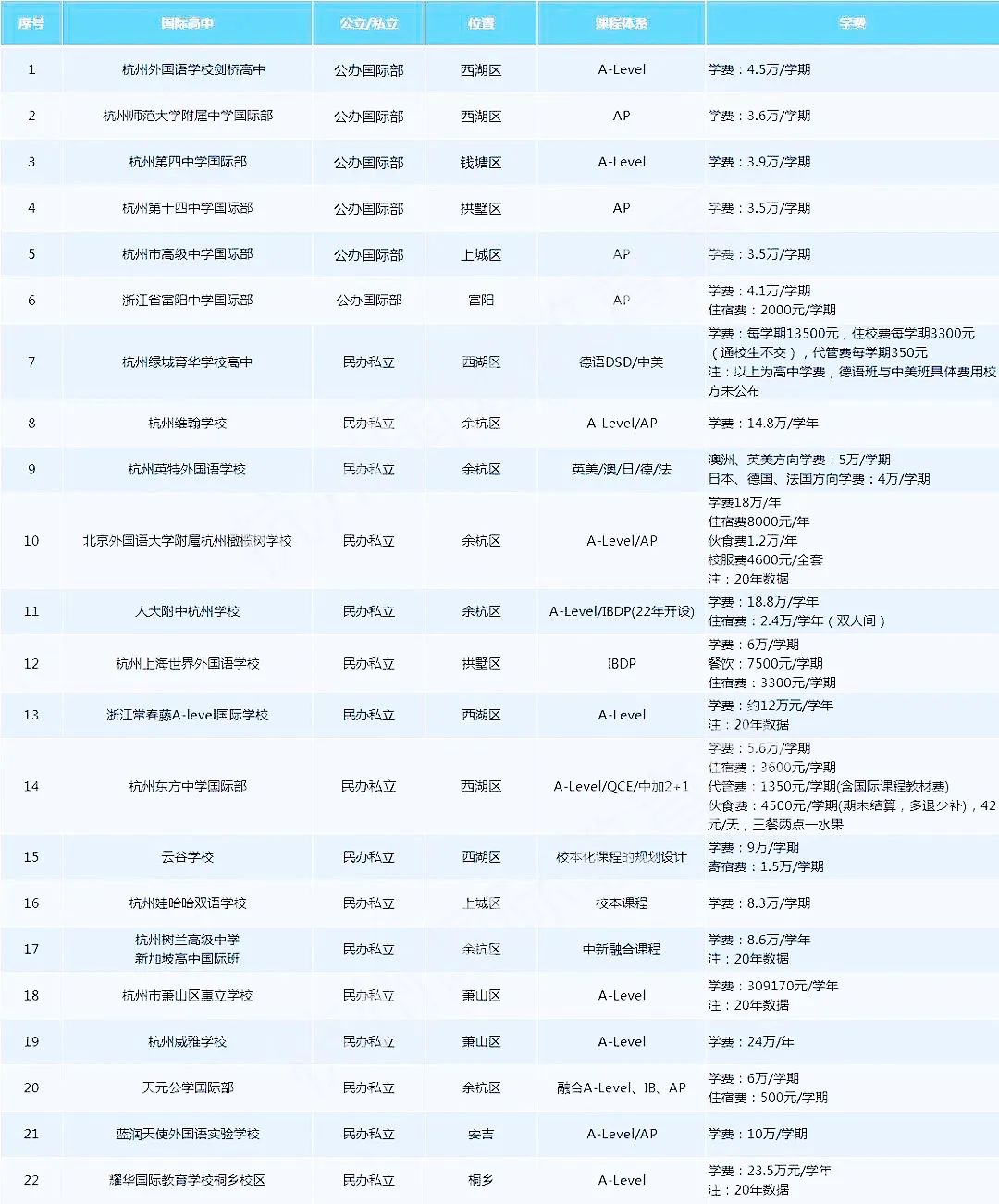 01、杭州部分国际学校学费汇总