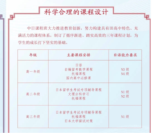 田家炳中日课程实验班是国内赴日本留学优质的品牌项目。学生零起点学习日语,完成高中学业后赴日本留学。办学早、性价比高、成绩亮眼! 无自主招生名额,只能通过中考。