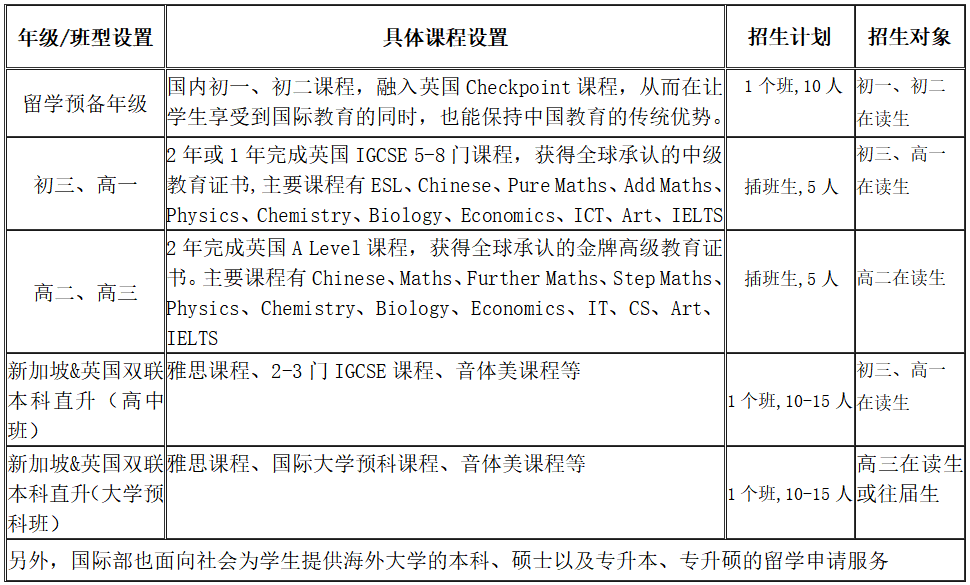 国科大(青岛)附属学校国际部创建于2020年,开设留学预备年级课程、英国剑桥CIE和牛津AQA两大考试局的IGCSE、A Level国际课程以及新加坡&英国双联本科直升项目(高中班)与本科预科课程。