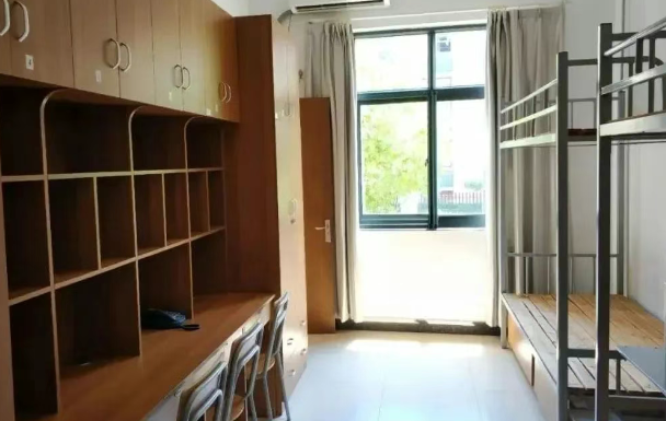 杭外剑高宿舍整体的设计偏传统老式,宿舍是4-5人间,上下铺,学习区域和床铺是隔开的。寝室内配备空调,每人都有小衣柜和书桌。