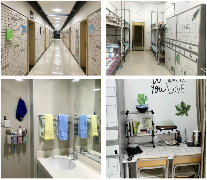 杭高国际部的住宿是和普通中学部安排在一起的,同在学生公寓内。主要是6人间,同时学校还为特殊身高的学生准备了加长的床铺和4人间。寝室生活、学习设施一应俱全,每个宿舍均提供热水,配有空调、独立卫生间、直拨电话、生活区配有洗衣房和超市等。