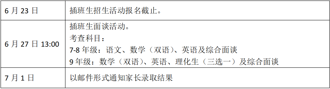 2025学年第一学期(秋季)中学插班生招生活动安排如下: