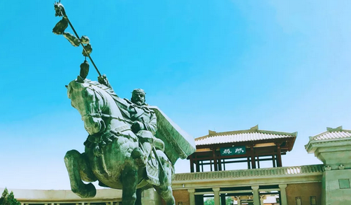 我们来到了阳关,说到阳关便会想起王维的《送元二使安西》,“渭城朝雨浥轻尘,客舍青青柳色新。劝君更尽一杯酒,西出阳关无故人”。阳关是古代重要的军事重地和途经驿站,是古丝绸之路通往西域各国的两关之一。在阳关景区的门口,赫然屹立着一尊张骞骑马奔走的铜像。只见膘肥体壮的战马一蹄高抬,呈嘶鸣状,而跨坐其上的张骞威严而坚定,身后的战袍随风飘扬。遥想两千年前,多少将士曾在这戌守征战,多少使臣、商贾、僧侣曾在这里验证出关,又有多少迁客骚人在这儿写下不朽诗篇。