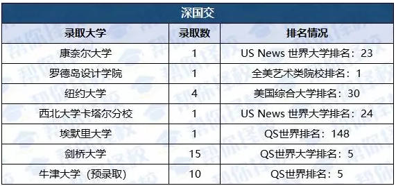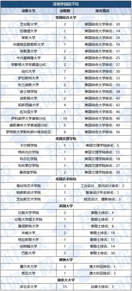 在家长的择校因素中,国际学校的升学走向无疑是最受关注的因素之一。各大学校2019届的录取成绩陆续有来!小编搜集了各个学校目前官方发布的录取信息,进行了整理,仅供各位家长在选择学校时的参考。快来看看深圳地区有哪些学校的学生拿到梦校offer了。