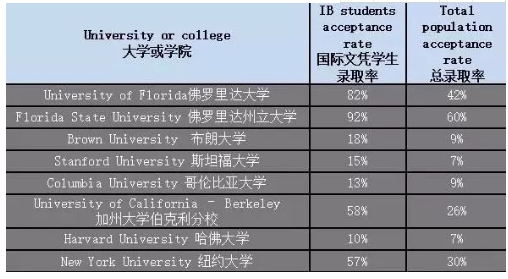 IB成熟的国际化素质教育,不仅是美加等国知名大学的入学标准,优秀的IB学子也是各个名校所追求的目标。权威数据统计,世界各地的IB体系的毕业生一直保有极高的大学升学率和名校录取率,并不断地被全球各大学广泛接受。