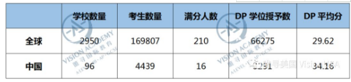 其中,中国大陆地区有96所IB学校的学生参考,吸引了4439位考生,考生平均分为34.16分。中国考生中有3291名学生获得IB全文凭,全文凭获得率高达74%,共有16位考生获得满分。