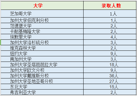 以下是星河湾双语学校第18届大学部分录取率