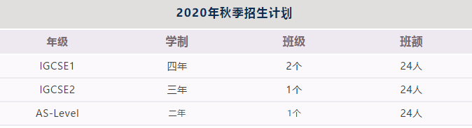 玮仕集团上海学校WES国际课程中心共设置了IGCSE1 / IGCSE2 / AS-level /A2-level四个年级,2020年秋季入学招生计划如下:
