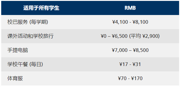 校巴服务:4100-8100元/学期