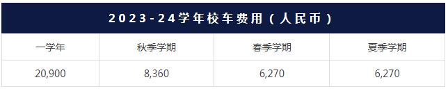 学生可选择使用校车服务。30公里内(学校至接送点的单程距离)的校车收费标准如下: