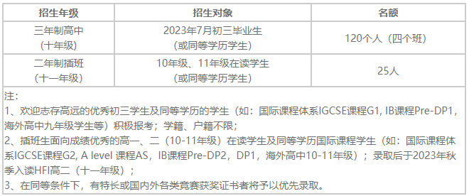 此外,HFI入学考试仅面向初三(即9年级)及以上学生开放,初二(即8年级)及以下年级学生仅作意向收集。