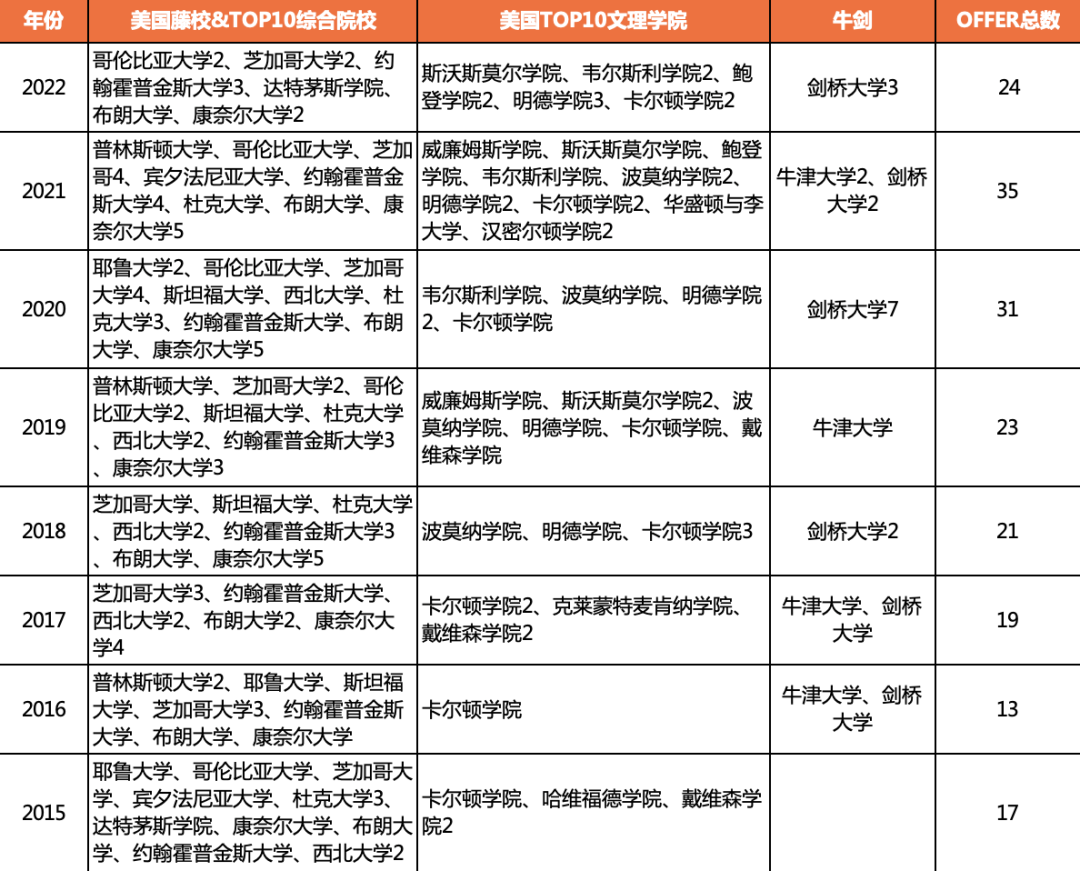 超过130人次获得美国藤校+TOP10院校(本科级别)录取