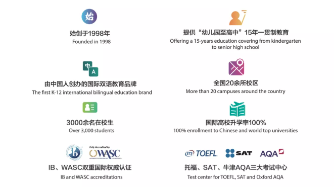 青苗始创于1998年,作为由中国人创办的国际双语教育品牌,最早开创中西方教育结合办学新模式。秉承“采中西合璧之萃,品文化融合之美”办学理念二十余年,现已发展成为“涵盖幼儿园到高中”十五年一贯制教育集团。在充满“爱、关心与支持”的多元化环境中,学生们将努力成为勇于探究、勤于思考、善于交流、敢于冒险、知识渊博、坚持原则、懂得关爱、心胸宽广、全面发展、善于反思的终身学习者。