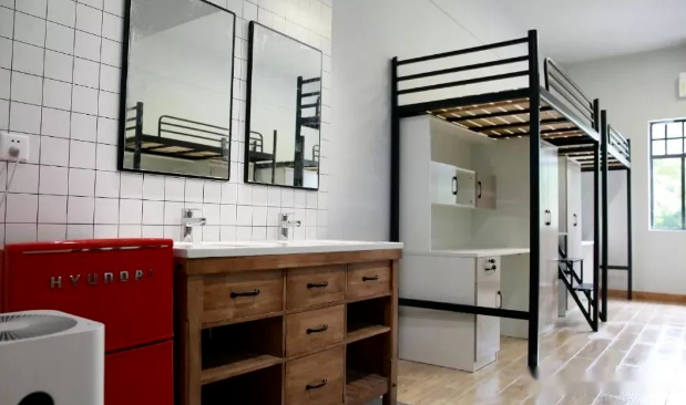 阿德科特宿舍提供舒适、安全和现代化的房间,而且比较注重噪音控制、灯光、社交、学习空间和细节设计,宿舍楼的每一层都设置了公共休息室,同学们可以在那里举办活动、会议等。从硬件上来看,阿德科特宿舍内有阳台、卫生间、淋浴间、洗手池等,干湿分离,还配备有冰箱、洗衣机、热水壶、吹风机,有种感觉,在阿德科特宿舍里,和在自己家里一样方便。