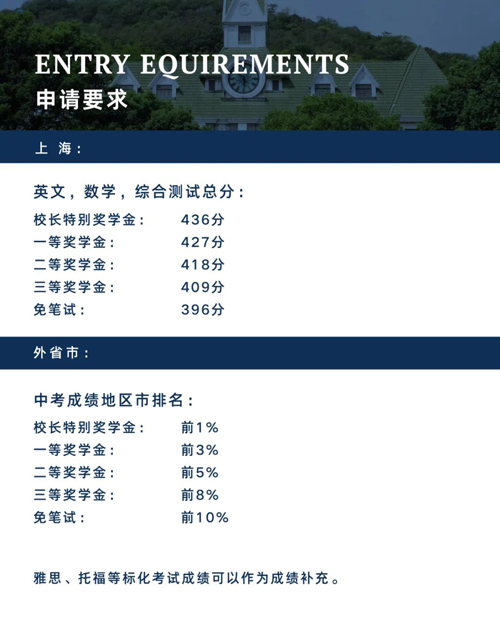 上海阿德科特学校2023年秋季招生已临近尾声,仅剩少量名额,凭中考成绩申请,中考成绩优异的学子还有奖学金可拿。上海阿德科特学校中考直录与奖学金申请通道,具体标准如下: