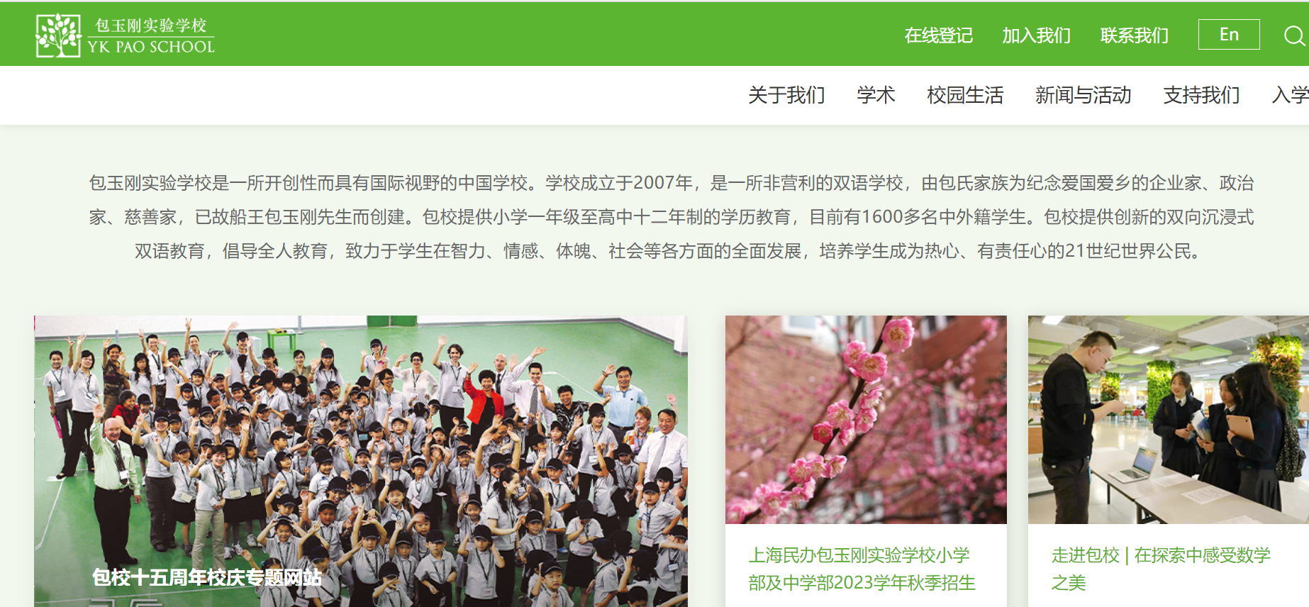 上海包玉刚实验学校是一所开创性而具有国际视野的中国学校,学校分为小学、初中以及高中部。小学及初中位于长宁区实行走读制,高中位于上海松江区采用传统英美寄宿模式(走读亦可选)。