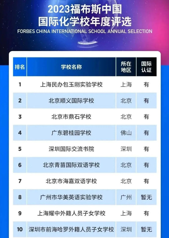包玉刚实验学校,常年稳坐上海国际学校TOP1的宝座,而且还是国内外各大榜单“红人”。6月初,福布斯中国发布了《2023国际化学校评选》,包校又一次不出意外地占据榜首位置。