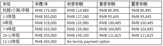 以下是2023-2024学年学费上海惠灵顿国际学校的学费情况。