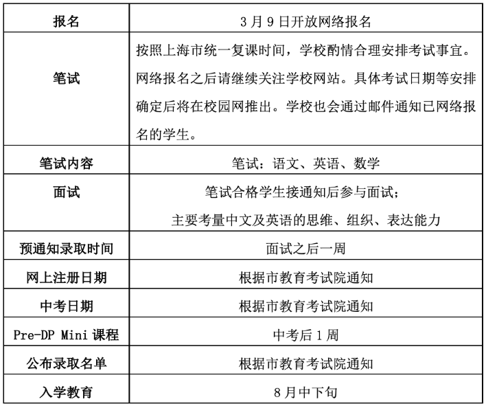 2、达到世外中学自主招生笔试分数线的学生,参与自主招生面试,以笔试和面试综合成绩择优预录取。预录取的上海生源学生,达到世外中学自主招生中考线,予以正式录取。