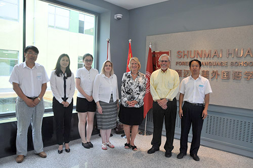 2015年6月26日下午,美国普斯特大学交流访问团参观考察了哈尔滨顺迈华美外国语学校,多家媒体全程跟访,顺迈华美外国语学校升学指导专家张莉女士全程陪同。交流考察期间双方就美国国际高中课程设置,美国大学课程衔接、以及双方今后合作事宜进行了深入的探讨和沟通。