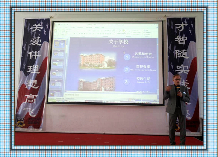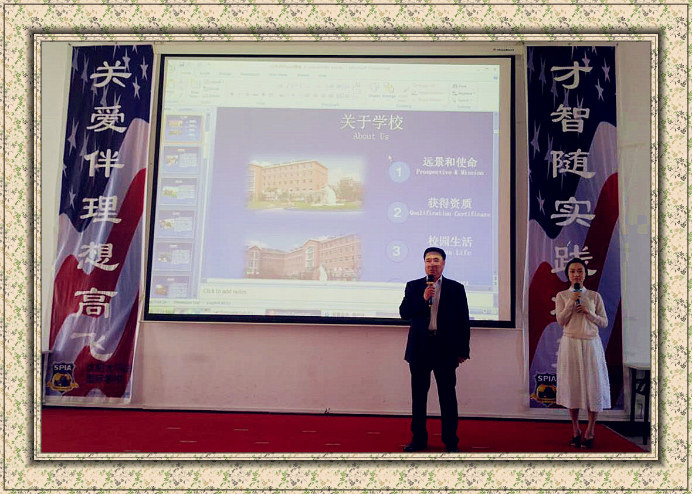 Shenyang Pacific International Academy (SPIA) and Shenyang Pacific Foreign School (SPFS)’s owner Mr. Hou and CEO Ms. Sarah Hou summarized the development history of SPIA in the past five years. They analyzed the existing problems, and arranged strategic plans for the future development of both SPIA and SPFS. During their presentation, they gave specific instructions on protocol of the organization structure of SPIA and SPFS.