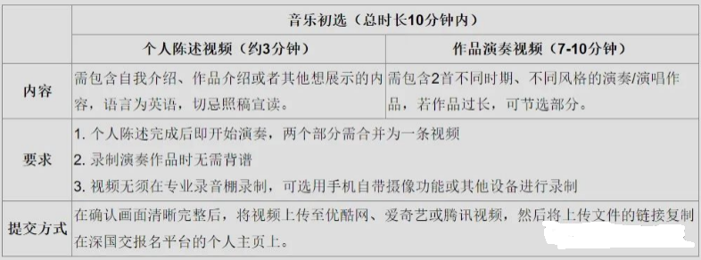 ◆提交作品:音乐考生需要在1月8日-3月10日报考后提交个人陈述及录制的演奏作品。