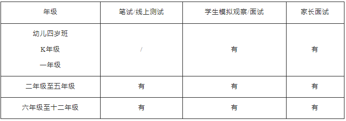 - 幼儿园中班及小学一年级申请人需要上个学期学业记录