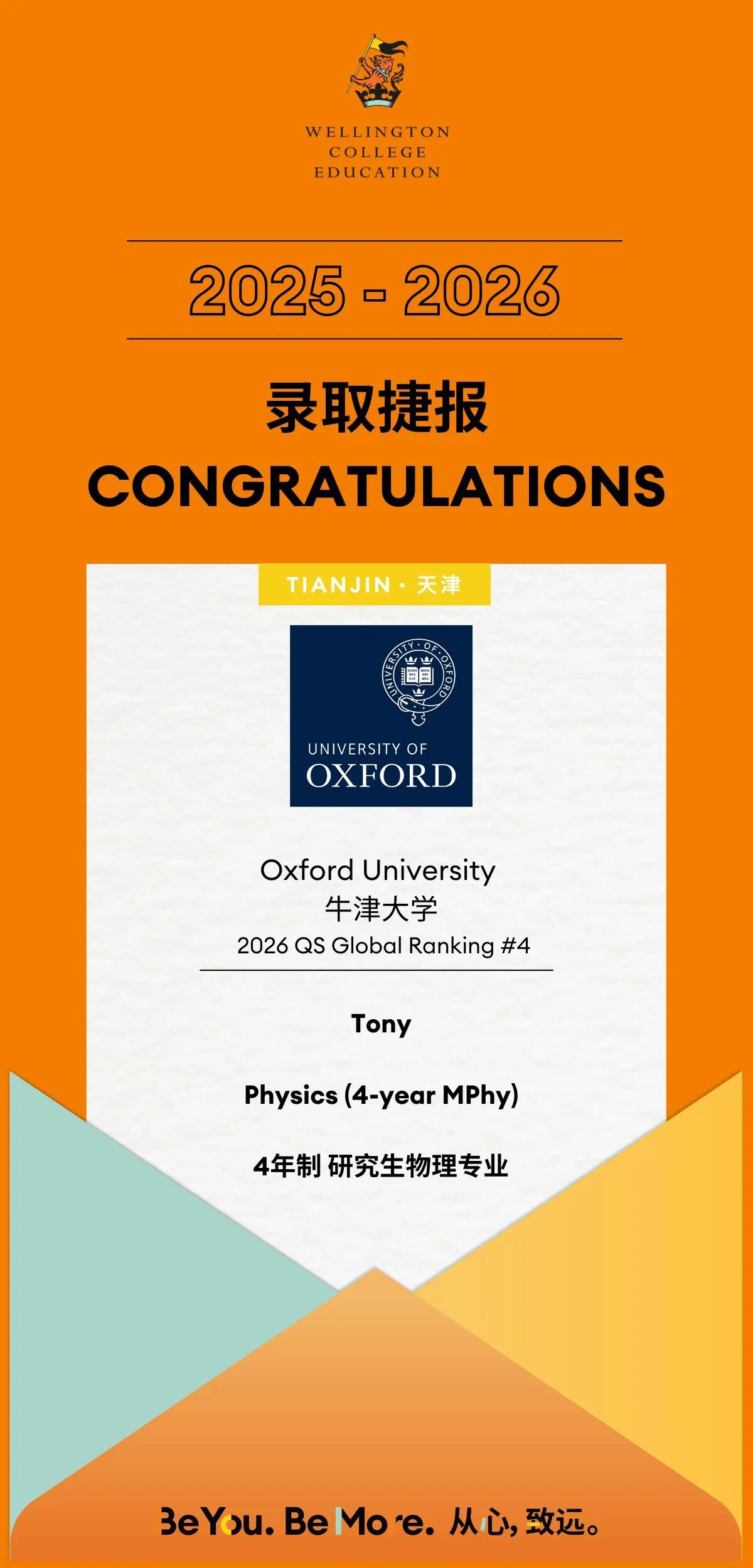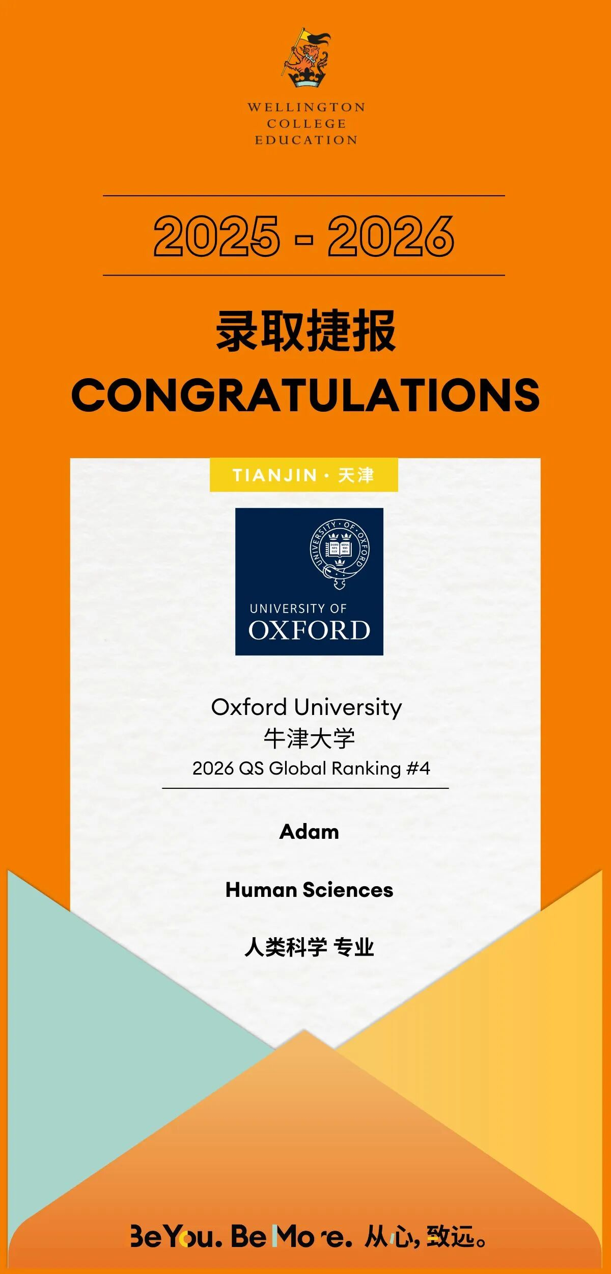牛津的录取,不仅是两位学生的成就,更是对我们教育者投入的见证。每一堂课、每一次对话、每一条建议,都曾为他们走到今天贡献过力量。在惠灵顿,我们始终致力于构建开放、多元、支持性的学习生态,通过个性化课程设计、优质学术资源与专业升学指导,助力每一位学子在热爱领域中深耕,在挑战中成长,逐步成长为具备批判性思维与国际视野的未来人才。
