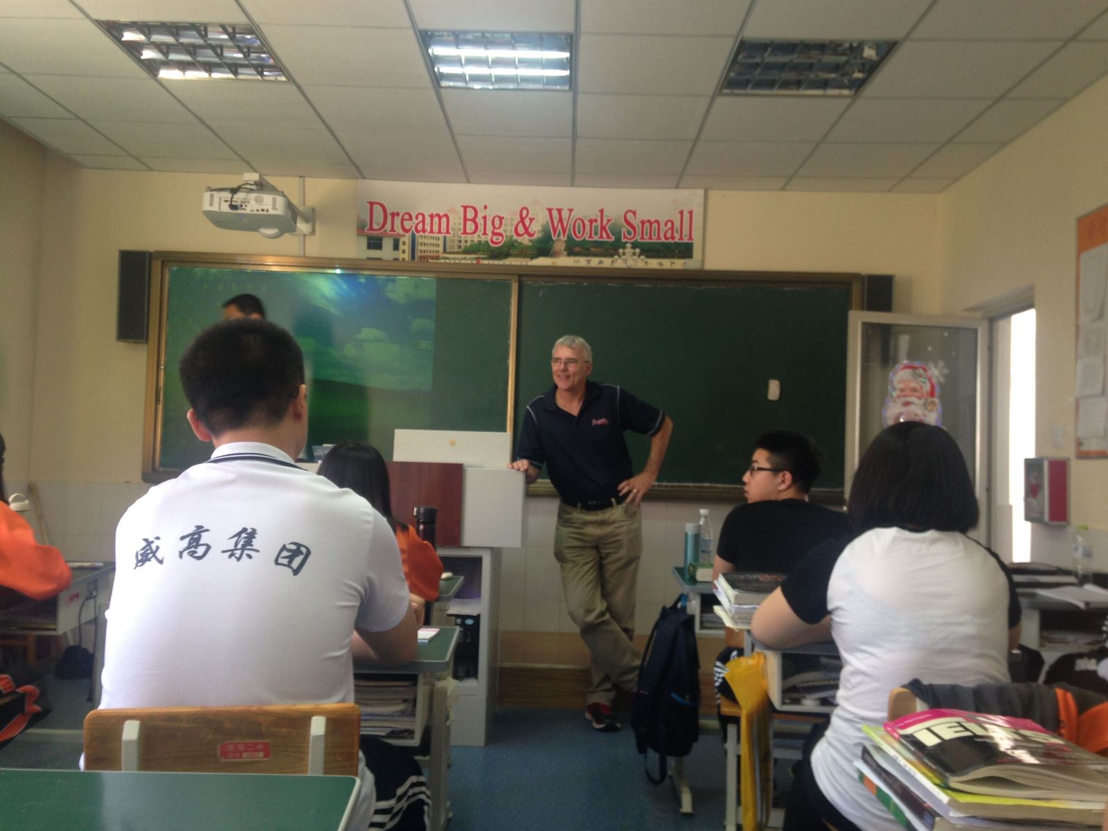 在介绍结束后,家长就加拿大的学习生活踊跃向David先生提问,David先生也一一给予耐心细致的解答。David先生说,这是他第四次来到威海,每次到威海他都感到非常的愉悦。因为加拿大教育局和威海二中之间已经建立了非常好的合作,二中的学生非常优秀,在加拿大的课堂上、生活中都取得了优异的成绩;