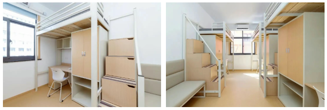 新增男生宿舍与女生宿舍楼各一栋,每个床位均配备独立的储物柜和书桌,房间内设有沙发与空调