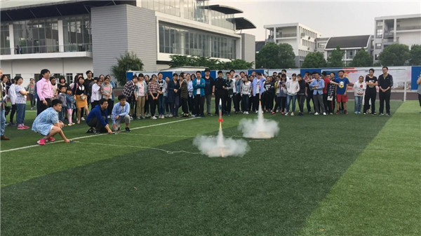 犹记得天鹰一号被放置在操场中央,同学们围了一圈,翘首以盼着“天鹰”直升苍穹。点火之后,只听火箭划破长空,摩擦空气发出“咻——”的一声,“天鹰一号”拔空而起,瞬间没入云层之中。同学们欢呼雀跃,激动地高呼“起飞啦!起飞啦!”一些同学兴奋地追逐‘天鹰’,又瞬时一哄而散,担心“天鹰”坠到自己头顶。一抬头,才发现“天鹰”张开了“翅膀”,正慢悠悠地乘风而降。