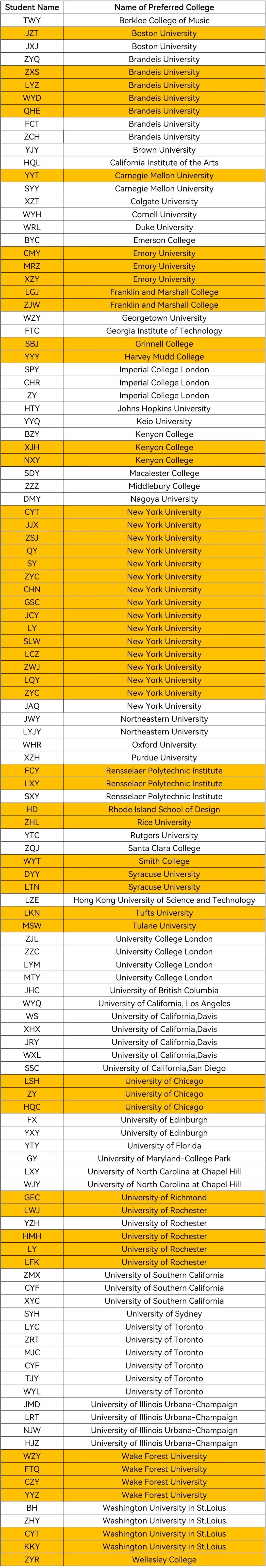 截至发稿前,星校申请美国方向的110位学生共收获: