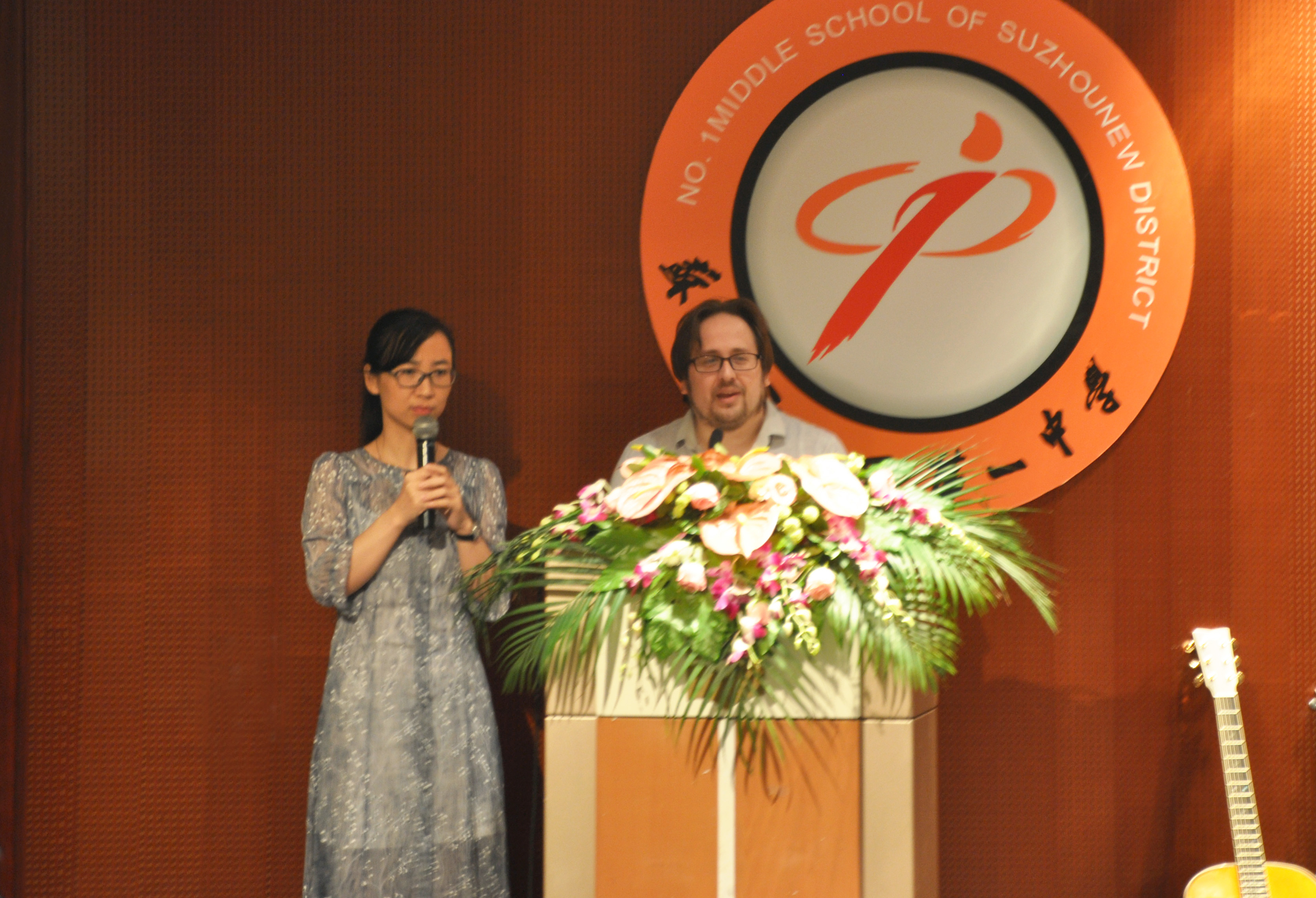 灯光亮起,在轻快的歌声中,我们帅气的杜同学携手优雅的周同学登上舞台,抑扬顿挫的开场,为新区一中美国课程中心2015级的结业典礼拉开了序幕!