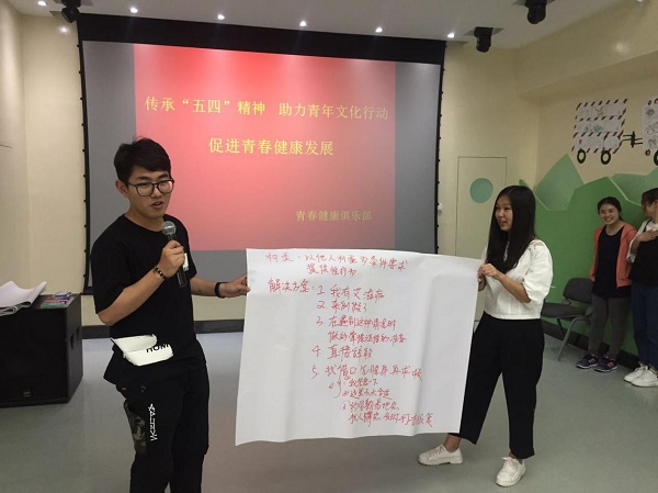 此次活动由专业老师和助教主持,以心理疏导和性健康教育为切入点,就“珍爱生命”、“性教育”和“自我保护”等方面进行了探讨。活动主要采用小组讨论、同伴教育模式,使得每位学生都能参与其中,大家积极踊跃,现场你一言来我一语,你出谋来我划策,提出了很多关于自我保护的可贵意见。老师们也都甚感欣慰,孩子们出国留学又多了一层安全保障。