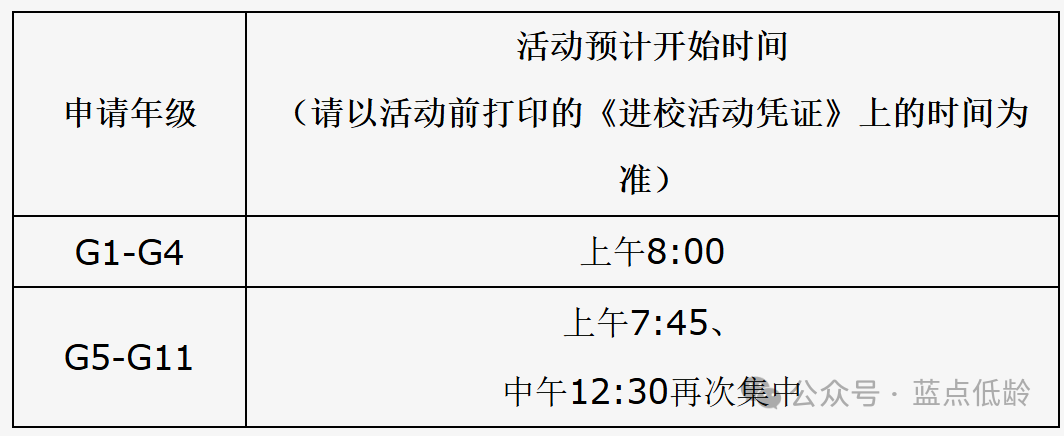 3. 插班生活动各年级当天安排(准确到校时间请以《进校活动凭证》中的时间为准,该凭证打印方式详见本公告第五部分)