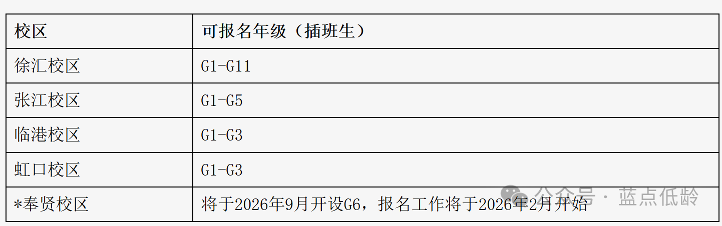 2025学年第二学期插班生活动将于11月进行,接受申请年级:G1-G11,各校区接受的插班年级不同。