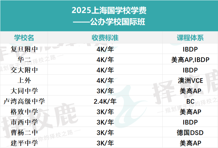 公办国际部:要说公办国际部最大的优势,那肯定是学费了,由于有政府财政支持,每学年只需几千元。目前上海一共有10所公办学校开设了国际班,收费标准我们统筹在下表中了。